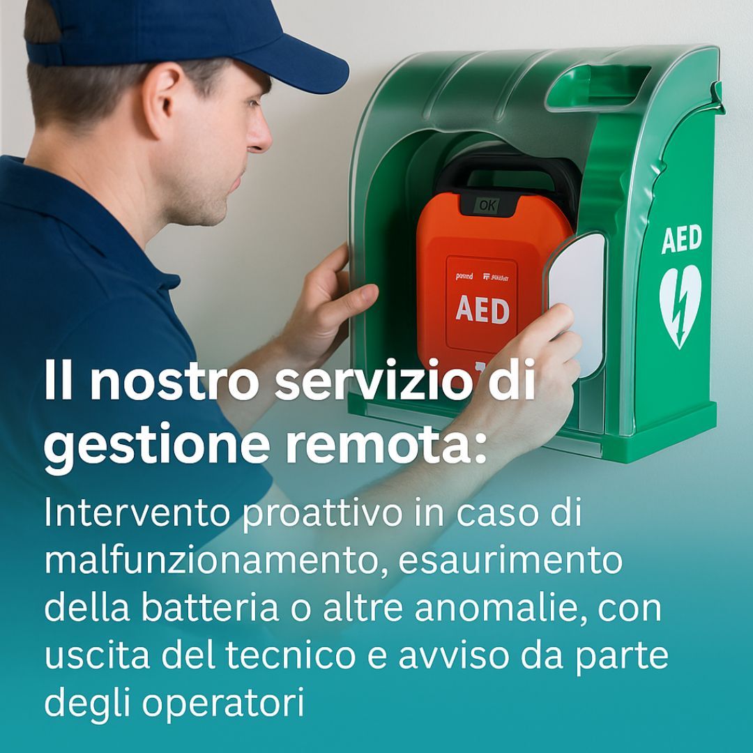 • Massima Affidabilità Operativa: Il DAE è sempre funzionante e pronto all'uso grazie alla doppia protezione (teca termo-regolata) e al monitoraggio costante.
